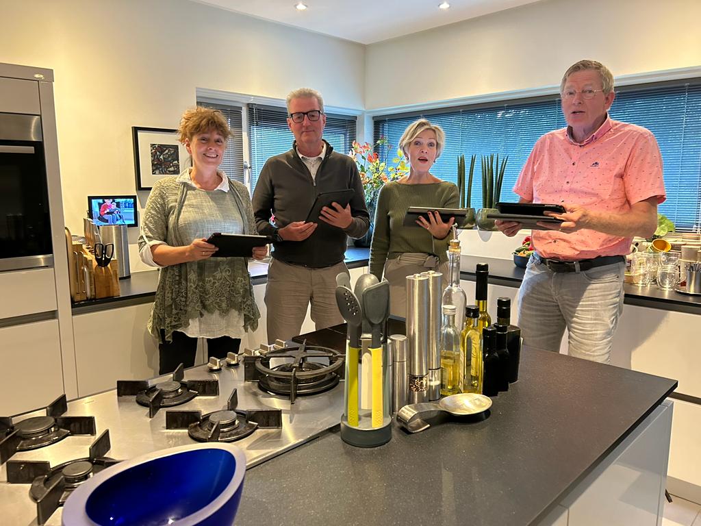 Vanaf dat we samen zingen oefenen we bij één van ons thuis en dat is altijd in de keuken. Dat bracht ons bij onze naam: “Culina kwartet.”